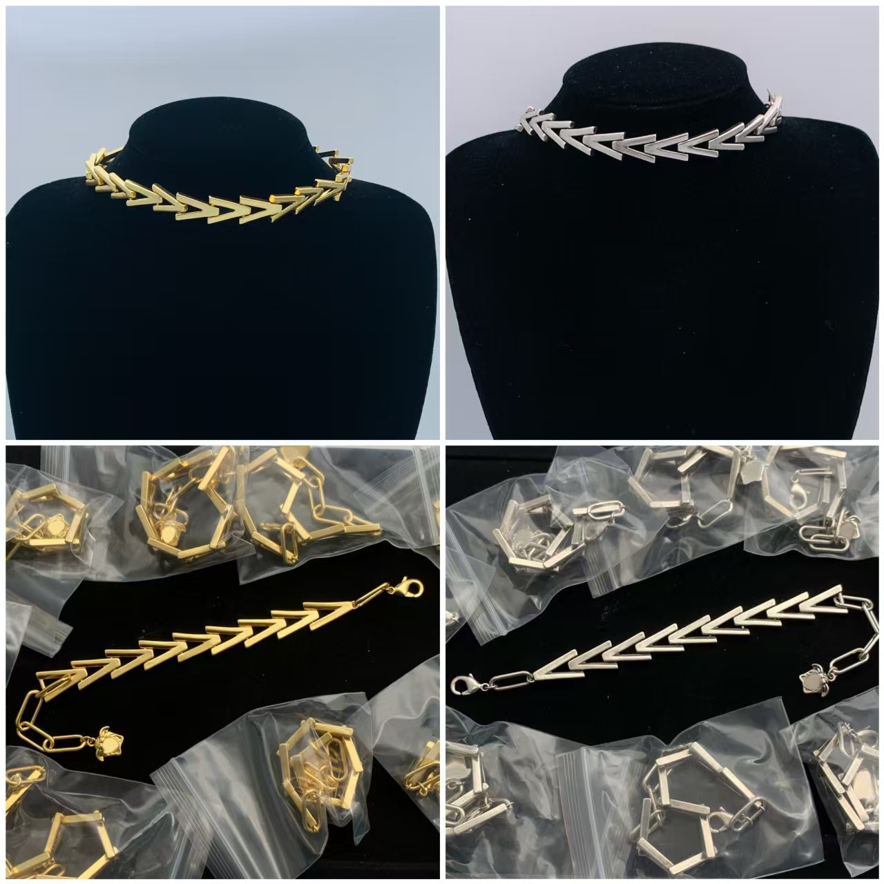 Valentine's V レターダイヤモンド真鍮二層ネックレス 2023 新しい気質レトロセーターチェーン多用途女性