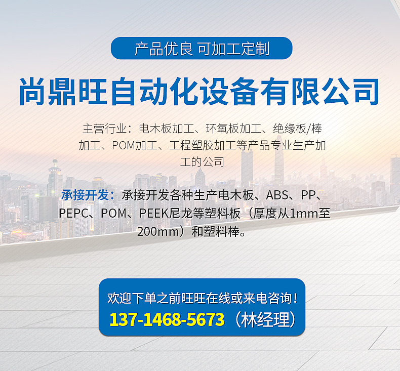 承接开发各种生产电木板、ABS、PP、PE、PC、POM、PEEK尼龙等塑料板(厚度从1mm至200mm)和塑料棒各种材料加工