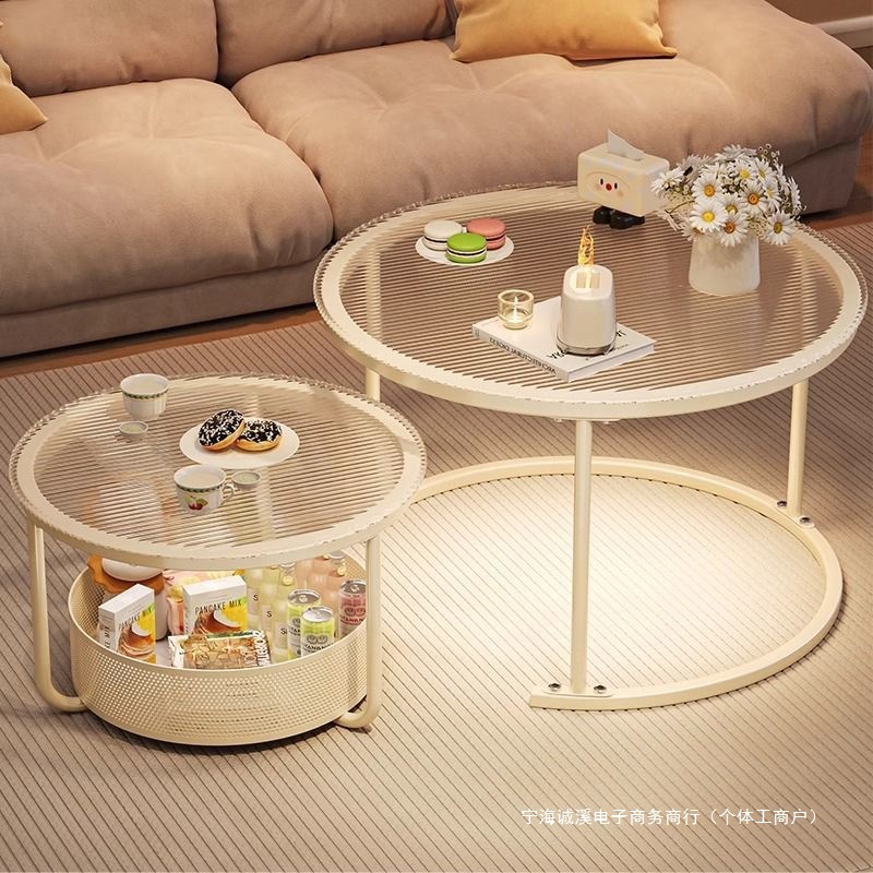 クリームネット赤客間家庭用円形一体組合せ茶何小戸型鋼化円数シンプル現代直販