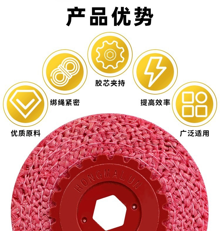工場直販研削アングルグラインダー研磨シート 4inch レッド麻ホイール金属バリ起毛ゴムコアサイザル麻研磨ホイール