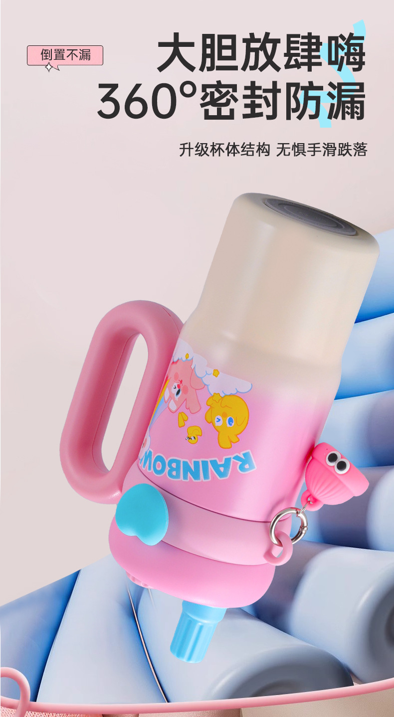 跨境12oz提手保温壶304不锈钢真空双饮户外运动水壶手提盖汽车杯