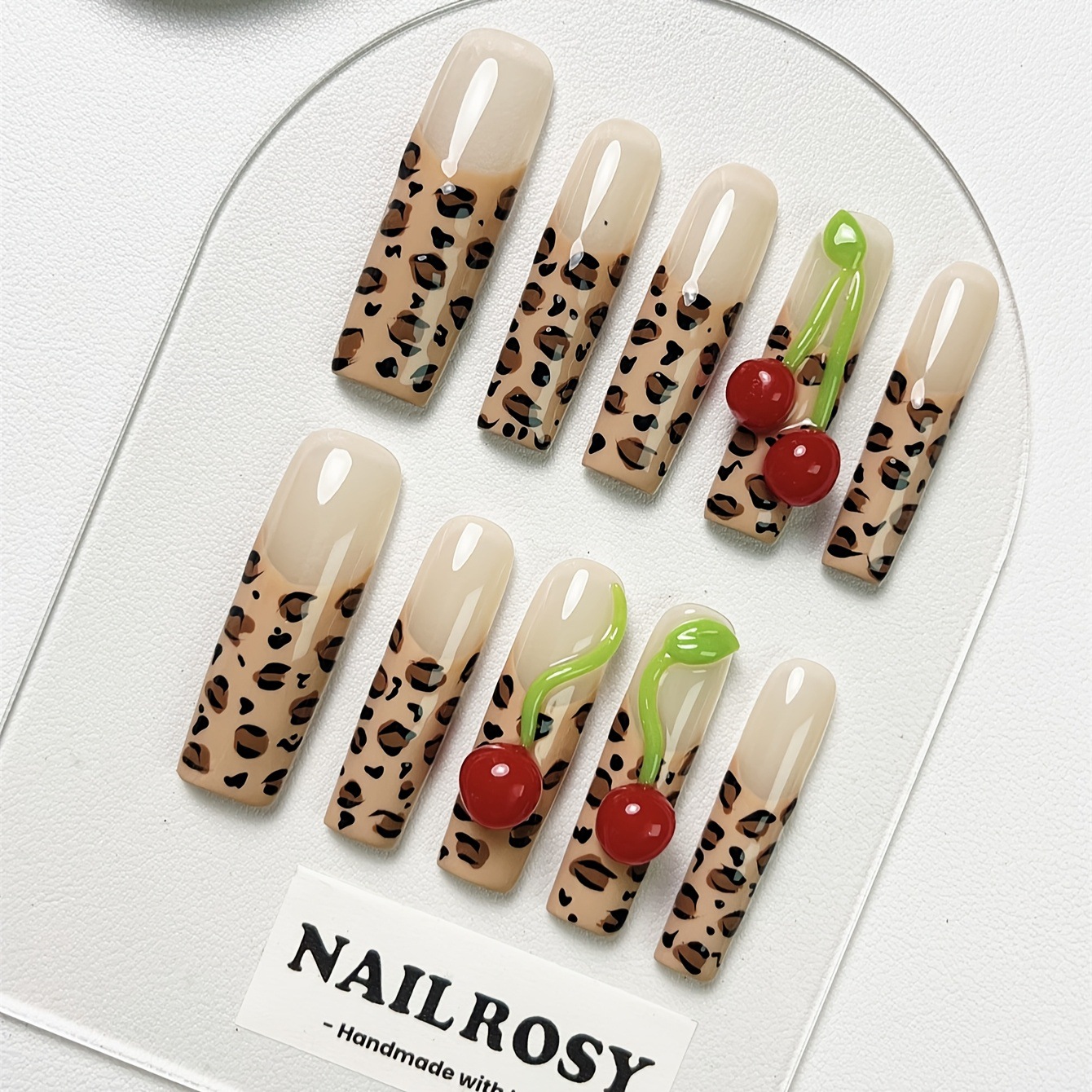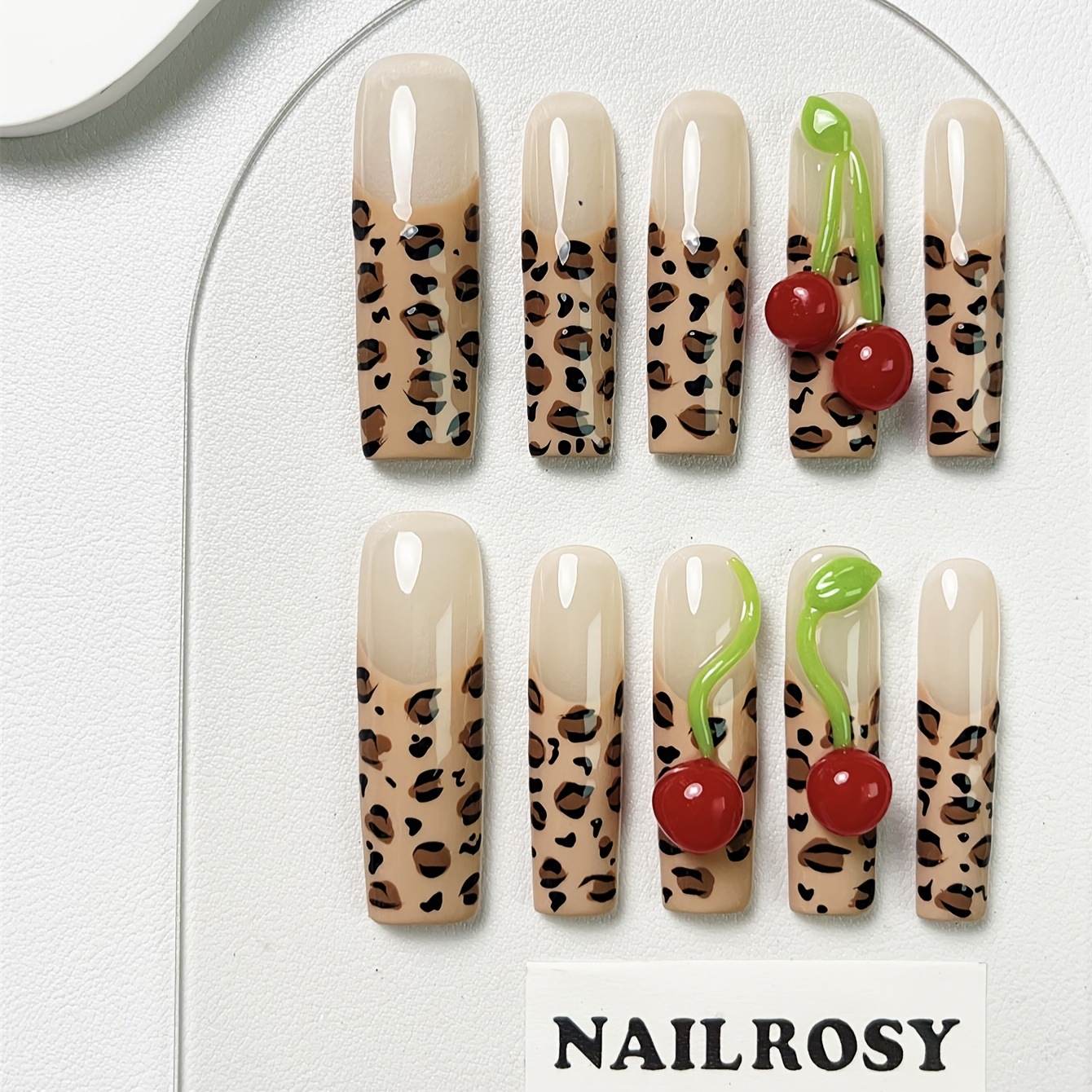 10 個ヒョウ柄プレスオンネイルスーパーロングスクエアプレスオンネイル