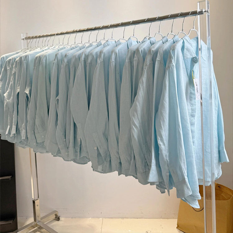 IN BLUE ハイエンドオールドマネースタイル! 100 リネン 防縮 洗濯機で洗える 軽くてリラックスできるシャツ