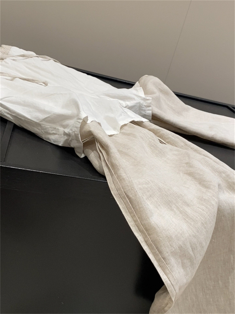 100% インポートリネンホワイトレディースシャツスラックス高級感ゆったり長袖シャツ新品トップス