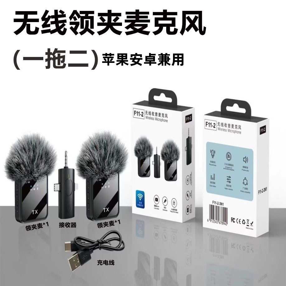 爆款F11三合一领夹麦克风F15二合一无线麦短视频拍摄手机直播话筒