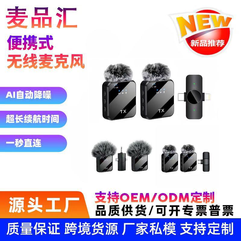 跨境热销无线领夹麦克风手机直播迷你无线话筒录音收音降噪麦克风