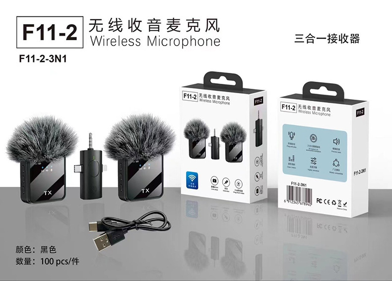 国境を越えた人気のF11ワイヤレスラベリアマイクスリーインワン携帯電話ライブブロードキャストマイク小型マイクF15