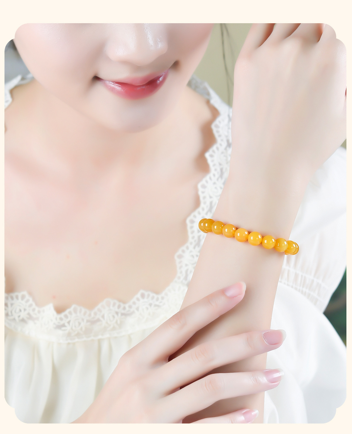 天然蜜蝋ルースビーズチキンバターイエローアンバーラウンドビーズブレスレットビーズブレスレットシングルビーズビーズブラッドアンバーシングルアクセサリー