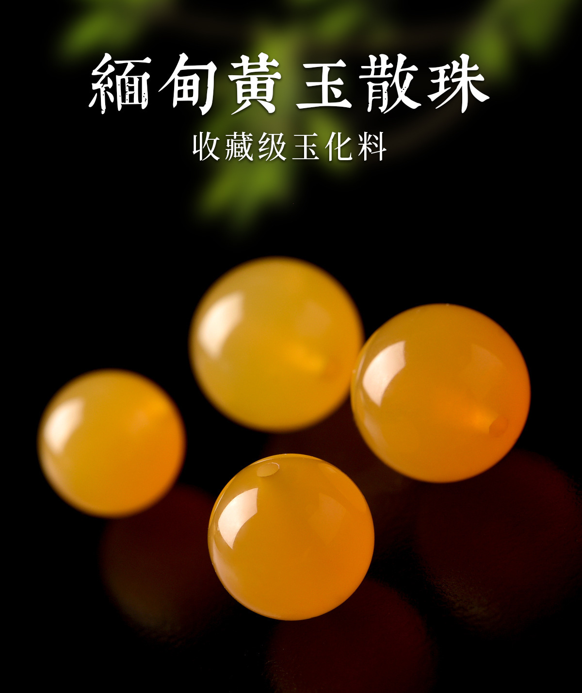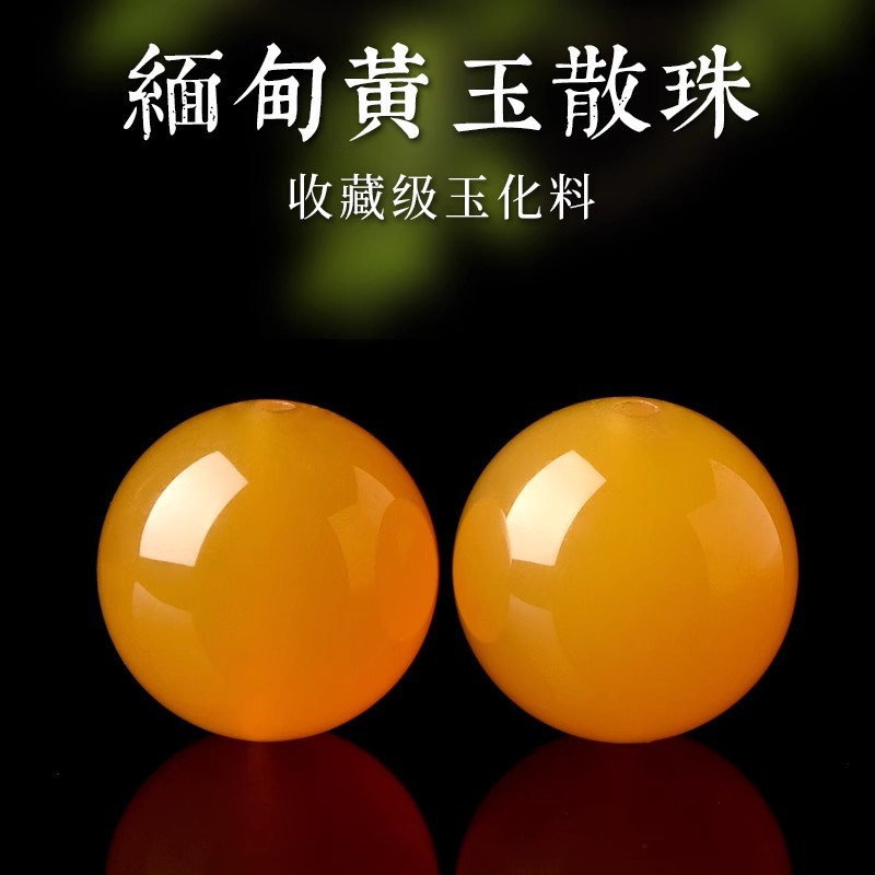 7a天然缅黄玉散珠子单颗diy手工串珠黄龙玉文玩配珠多宝缅红配珠
