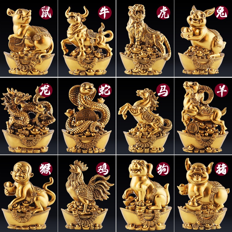 招財十二生肖置物セット12銅鼠牛虎兎龍蛇馬羊猿鶏犬豚客間オフィス装飾