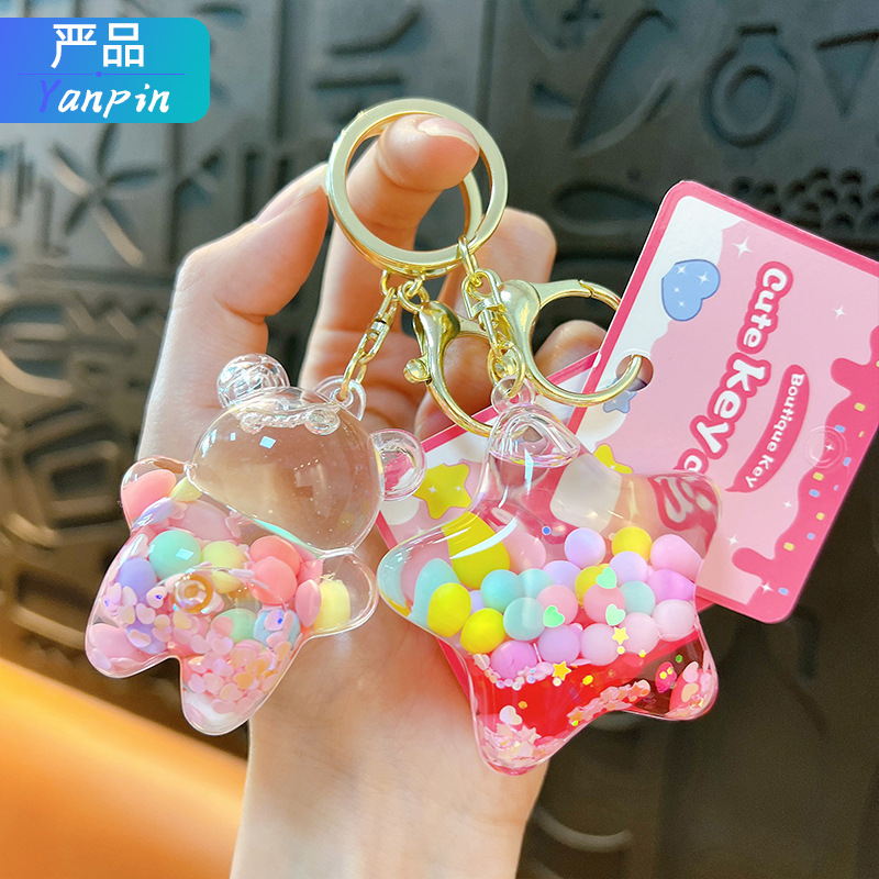 オイル入りアクリルジェリービーンズスターキーホルダー液体流砂キーホルダー車のバッグペンダント小さなギフト卸売