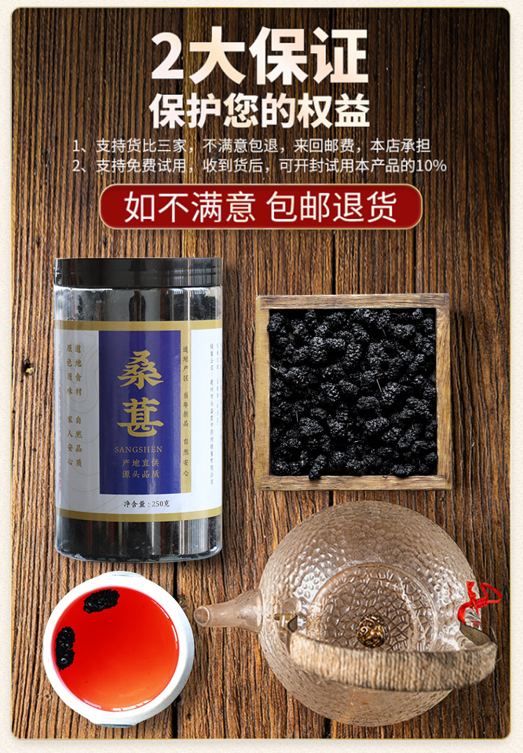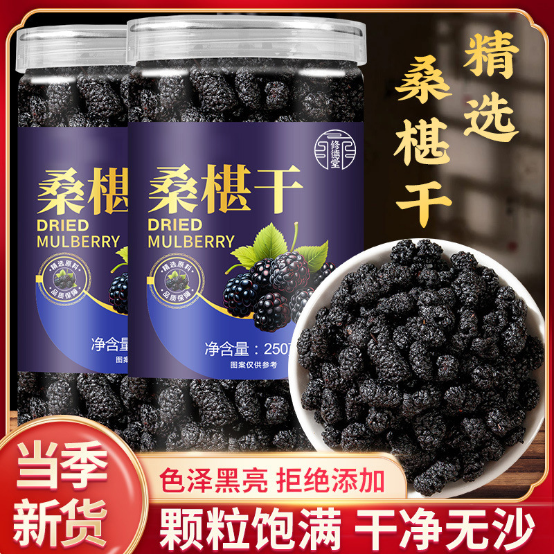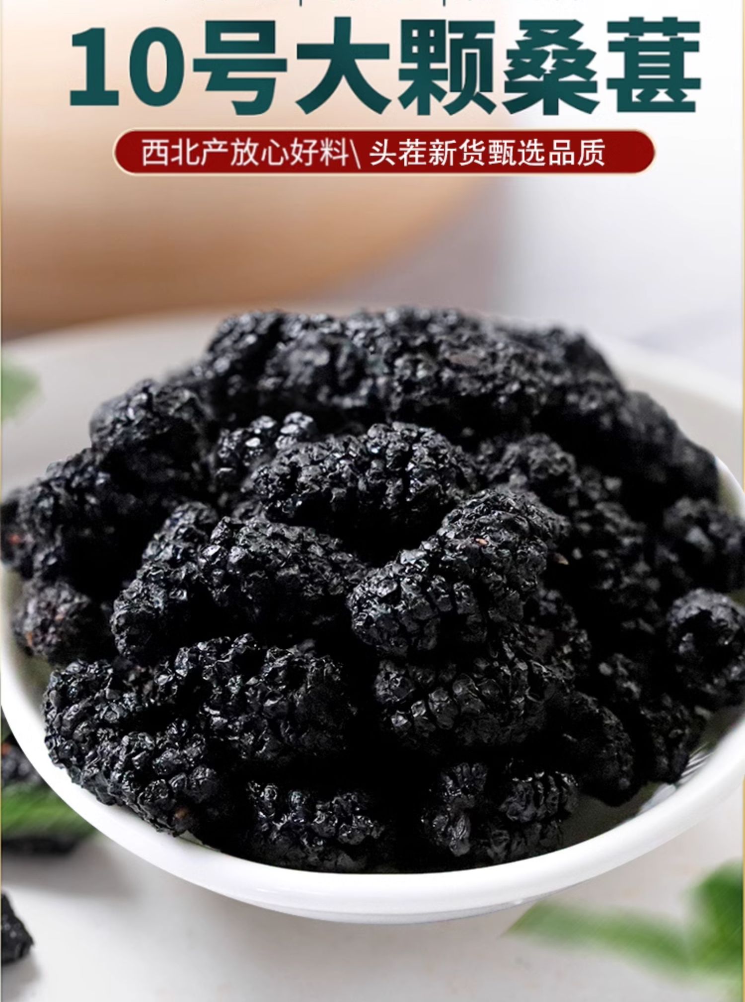 大颗粒正宗新疆野生特级桑葚干黑桑葚黑桑椹干免洗无沙果泡水即食