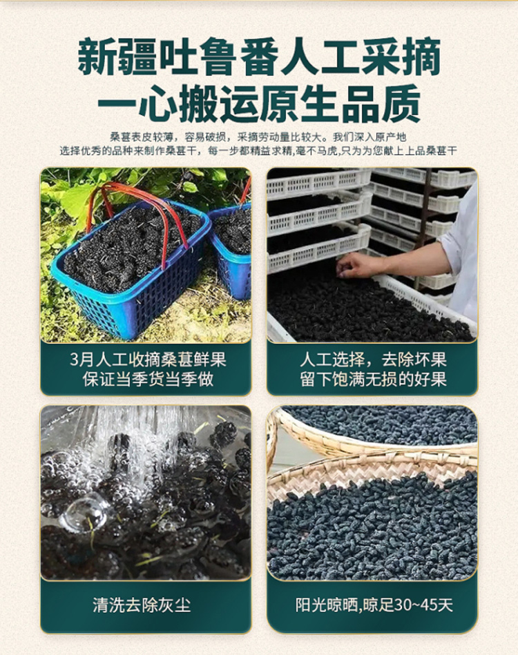 新疆産黒桑の実 初摘み 無洗浄乾燥桑の実 大粒 天然乾燥果実 お茶・酒用 砂なし乾燥桑の実
