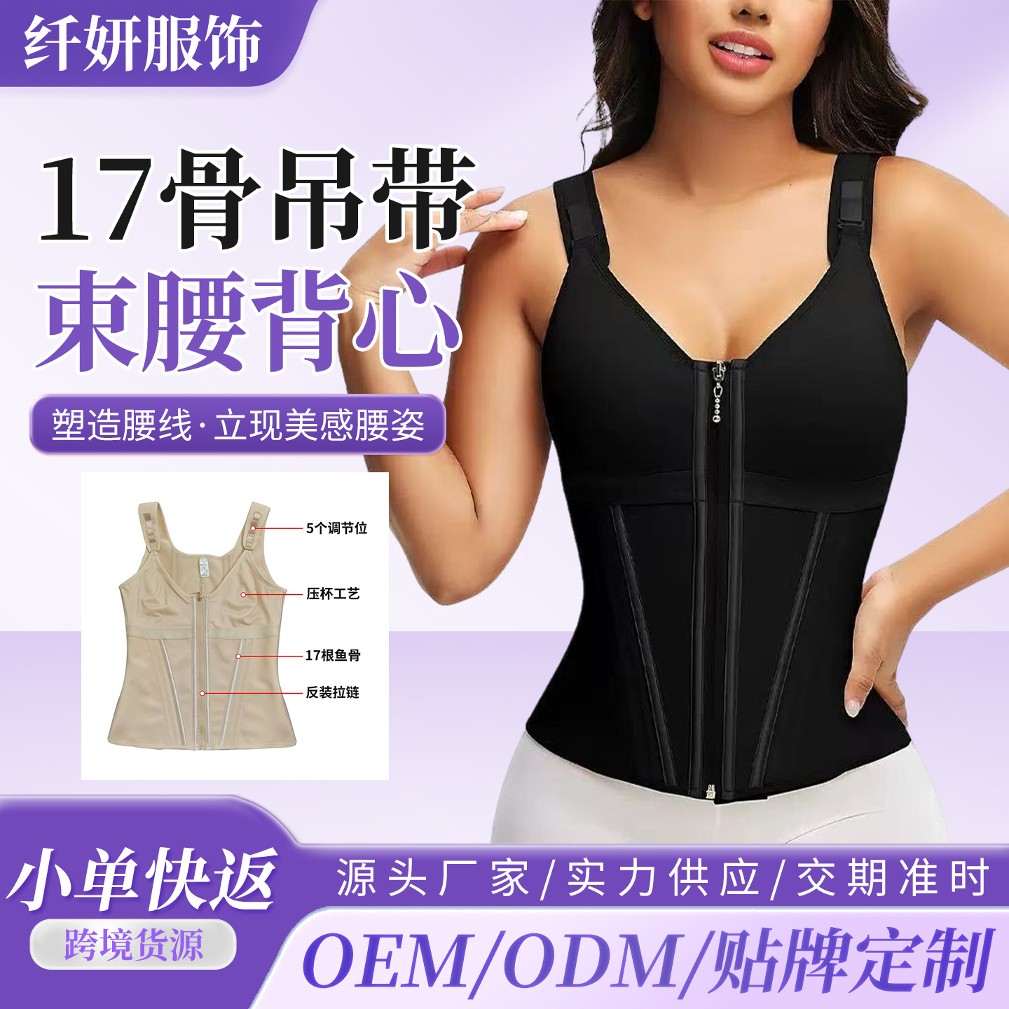 跨境亚马逊加强版收腹塑身衣女网布拉链双层17骨紧身束腰背心运动