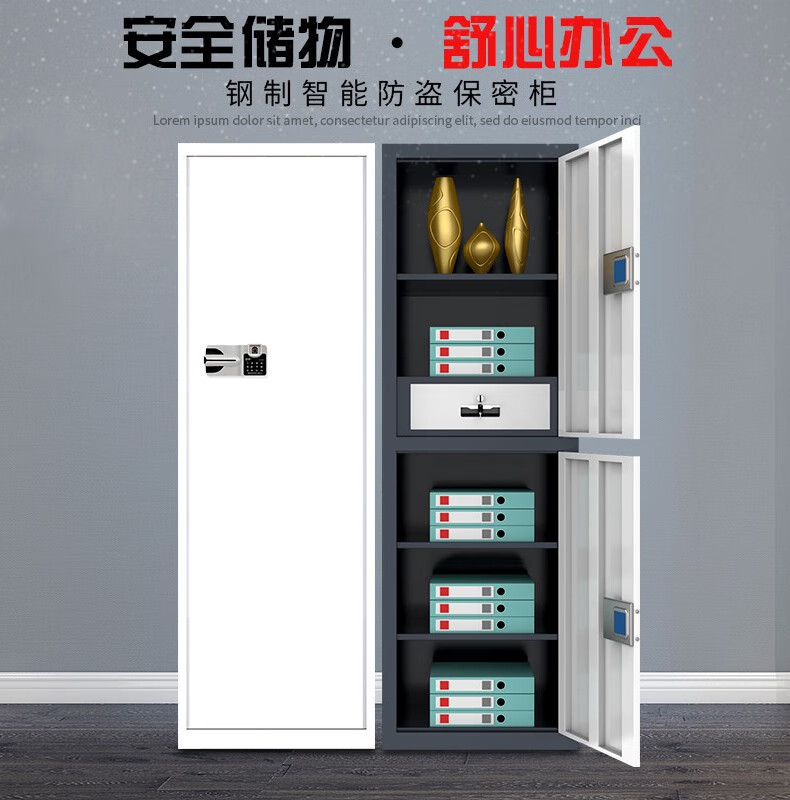 VLEN シングルドアセキュリティキャビネットホワイトダブルセクション国家セキュリティ指紋ロックファイルキャビネットスマートストレージキャビネット