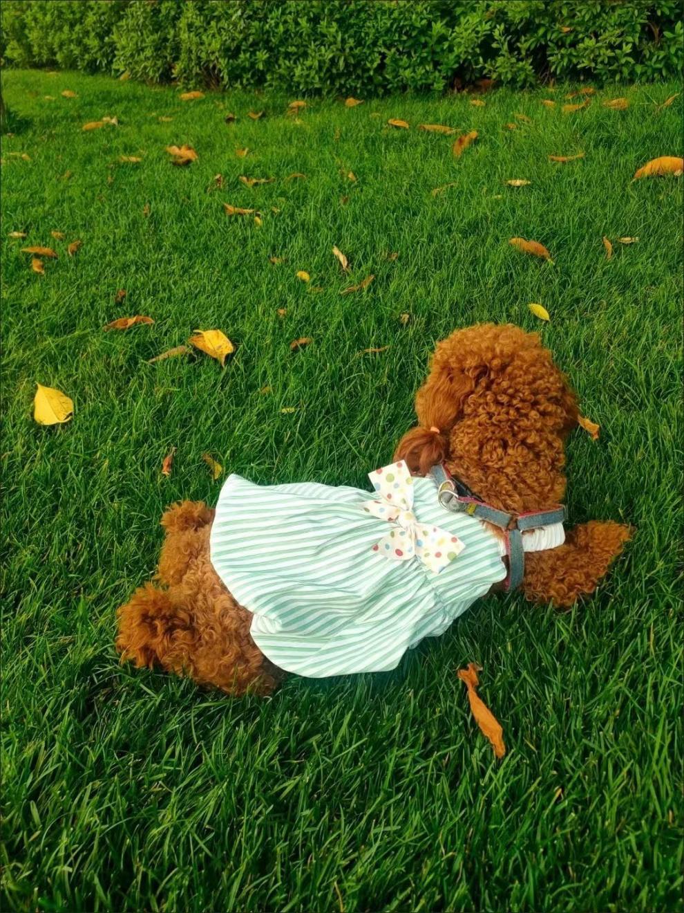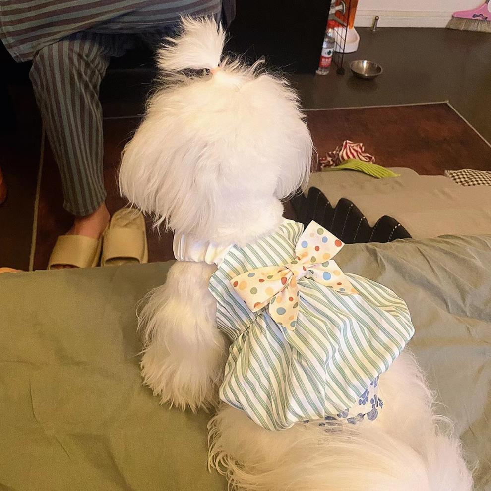 春夏ペット服リボンかわいいインストライプサスペンダースカート猫テディポメラニアン小型犬スカート