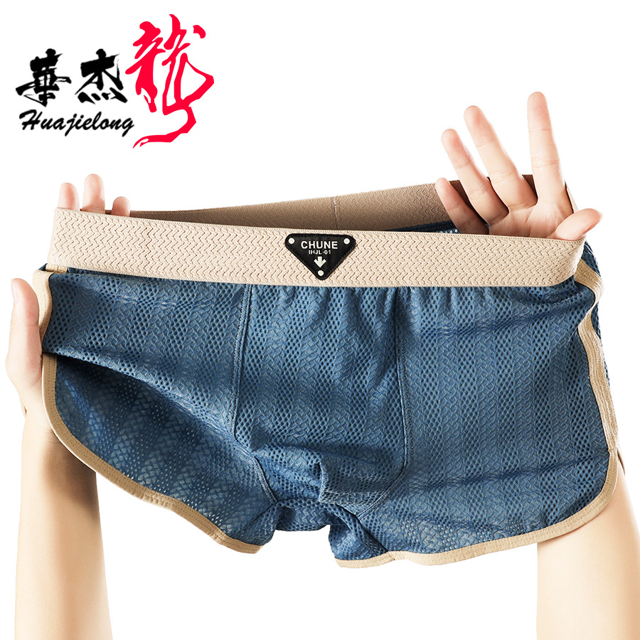 華傑龍氷糸新型男性下着純色卸売り中腰男性大サイズ通気性男性平角ズボン代発可能