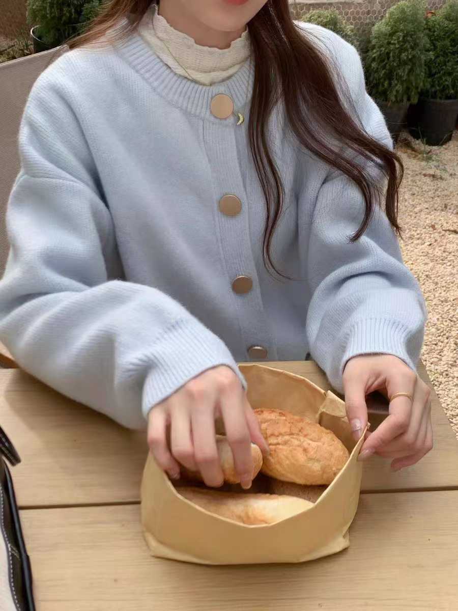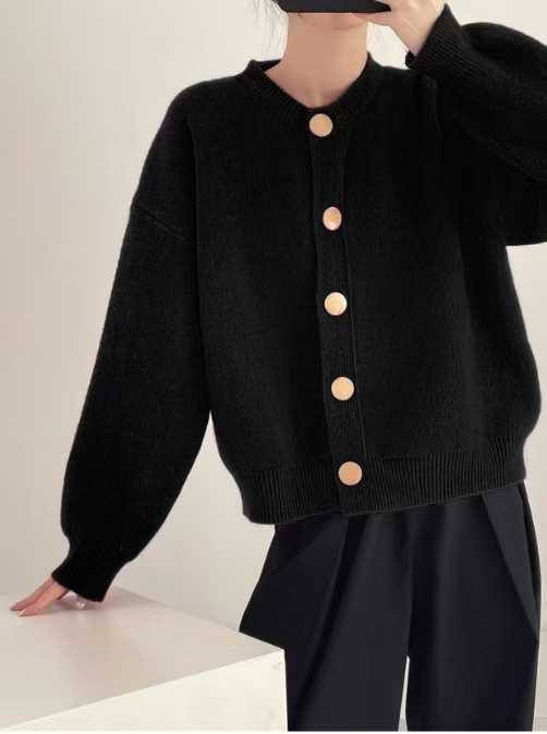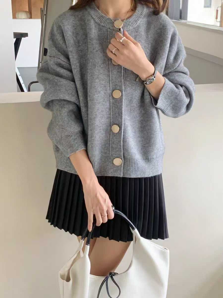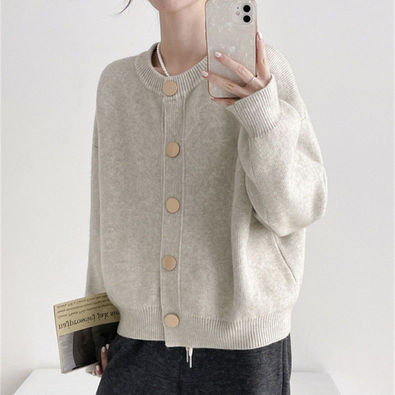 2024秋冬韩版单排扣纯色针织毛衣外套开衫慵懒宽松圆领秋冬上衣女