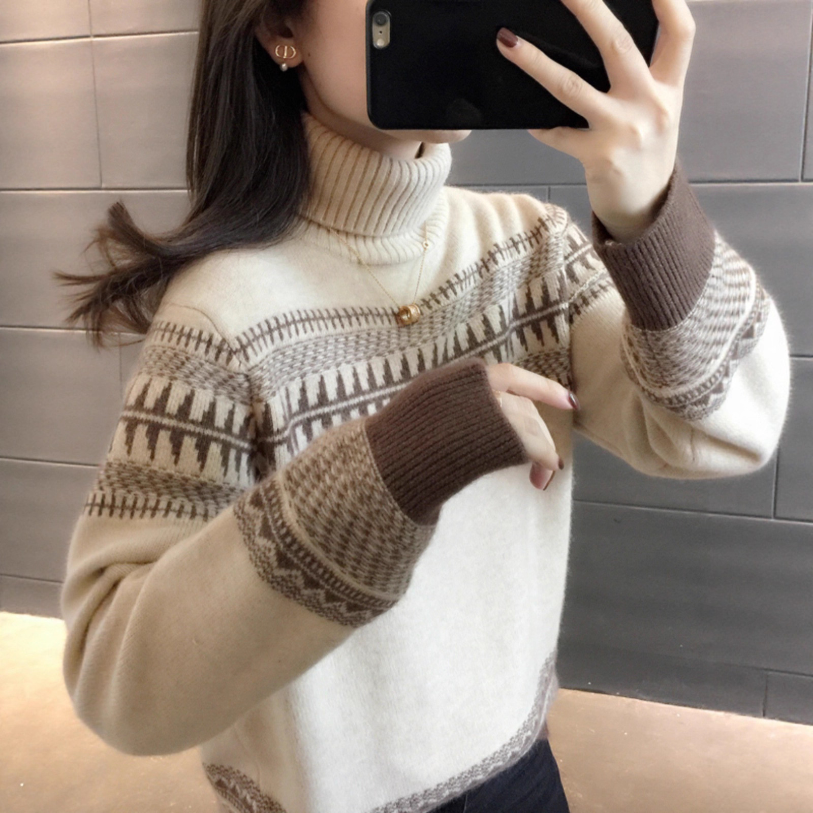 レイジースタイルハイカラー長袖ニットセーター2024冬新作大きいサイズファットmmデザインルーズ厚みのあるトップ