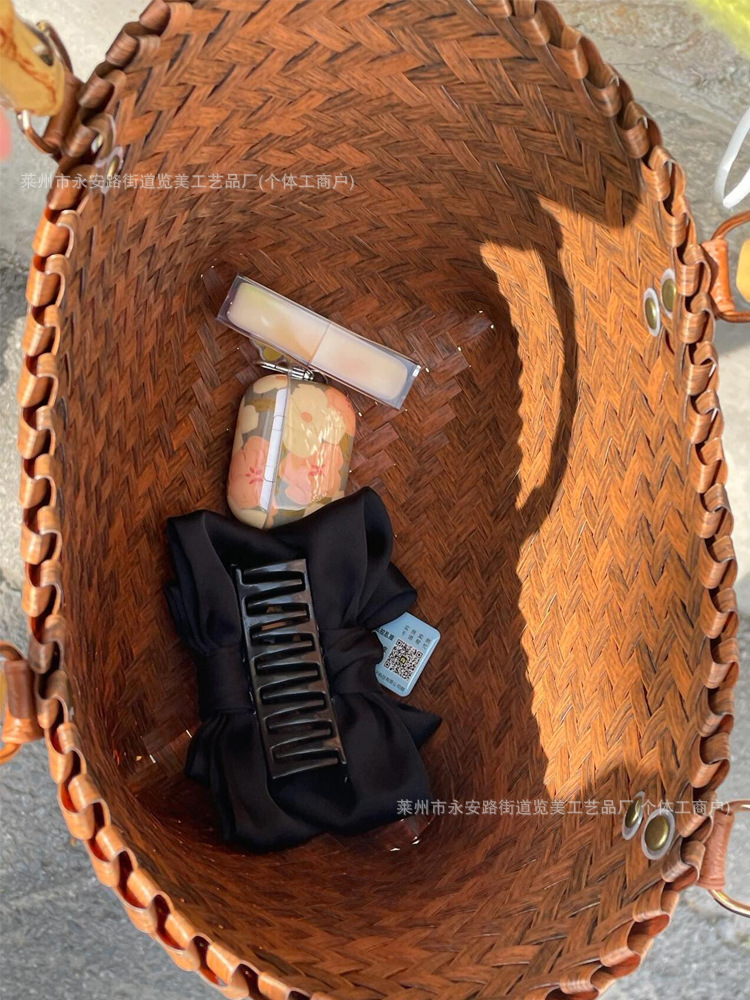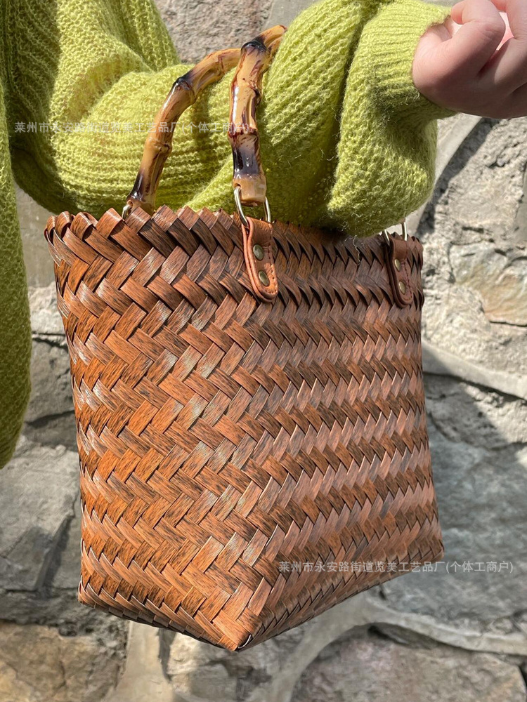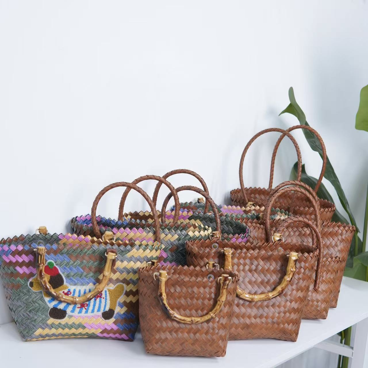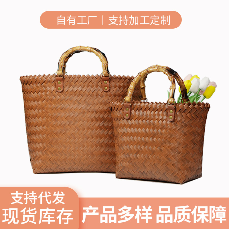 2025 新しい大容量手織りバッグ、ファッショナブルで多用途な織りバッグ、野菜かご、レトロな竹バッグ、ビーチバッグ