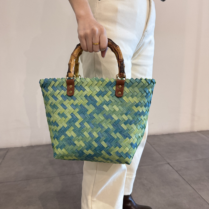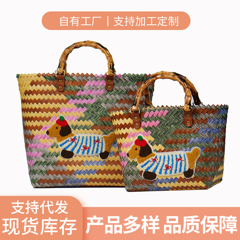 田园风编织包纯手工竹编2025新款法式手提草编彩色包包藤编高级感