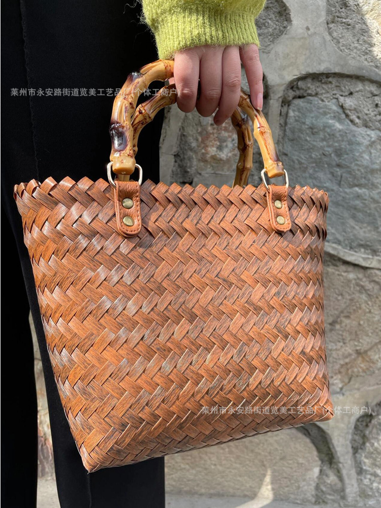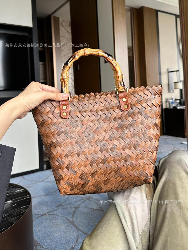 新しい籐ハンドバッグ、竹バッグ、レトロでシンプルな竹トートバッグ、大容量ショッピングバッグ、多用途の織バッグ