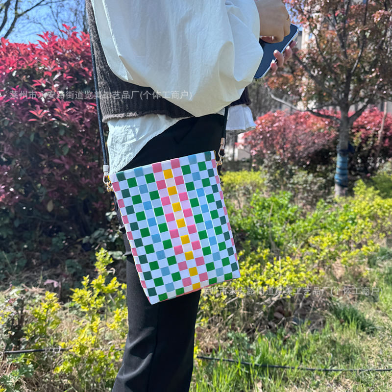マカロンカラーショルダーバッグ携帯電話バッグ 2025 新しい手織りバッグ韓国語版ニッチクロスボディバッグ小銭入れ