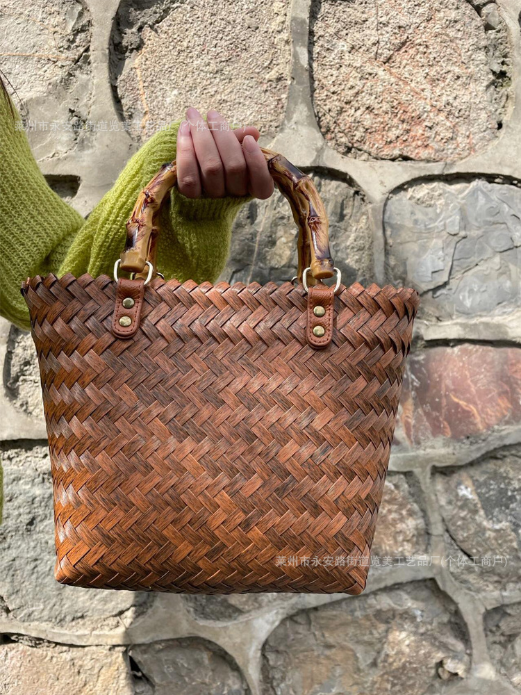 卸売り百合通勤新型竹節取っ手草編みバッグ女性夏復古手作り竹編み特包
