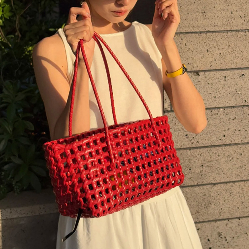 ニッチな新しい赤いプラスチックバッグ中空織バッグ通勤ハンドバッグお土産脇の下バッグビーチバッグ女性用