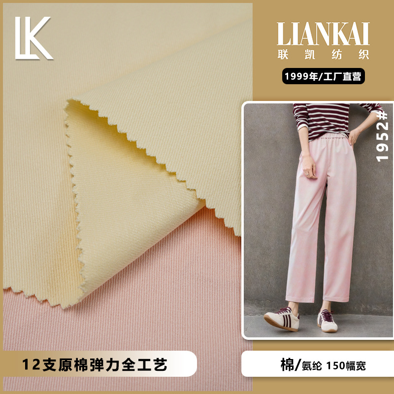 秋款12支原棉弹力全工艺赛络纺斜纹棉布料284g梭织左斜纹裤子面料