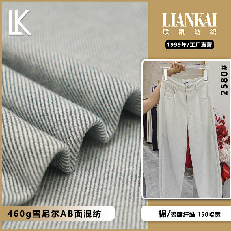 460g雪尼尔AB面混纺梭织棉秋冬双面裤装时装布 7支斜纹水洗棉布料