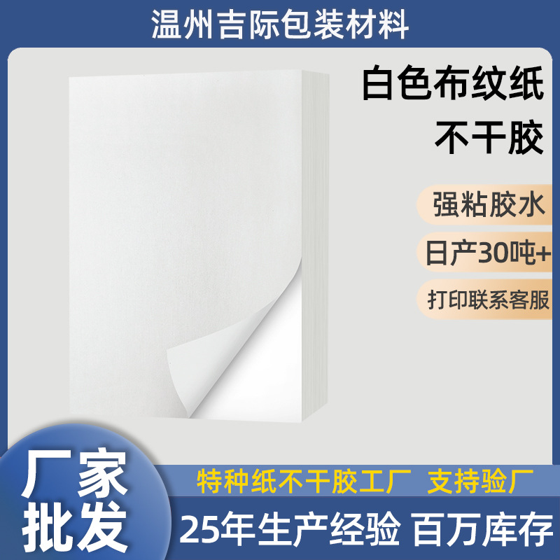工厂批发a3a4白色布纹纸莱妮纹标签贴纸定制商标贴牌特种纸不干胶