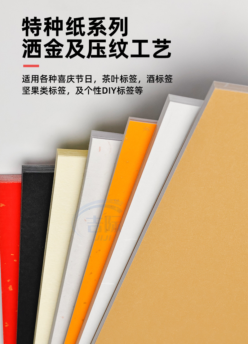 ラベルステッカーカスタマイズ A4A3 環境に優しい接着剤木材パルプ底紙金散布赤ライスペーパー特殊紙自己粘着