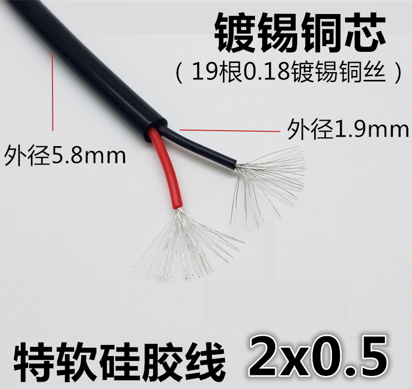 クロスボーダーシリコン電源コード2X1.0平方シリコーンゴムシース多芯線