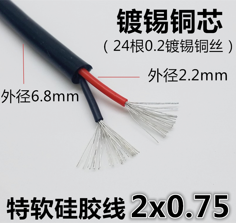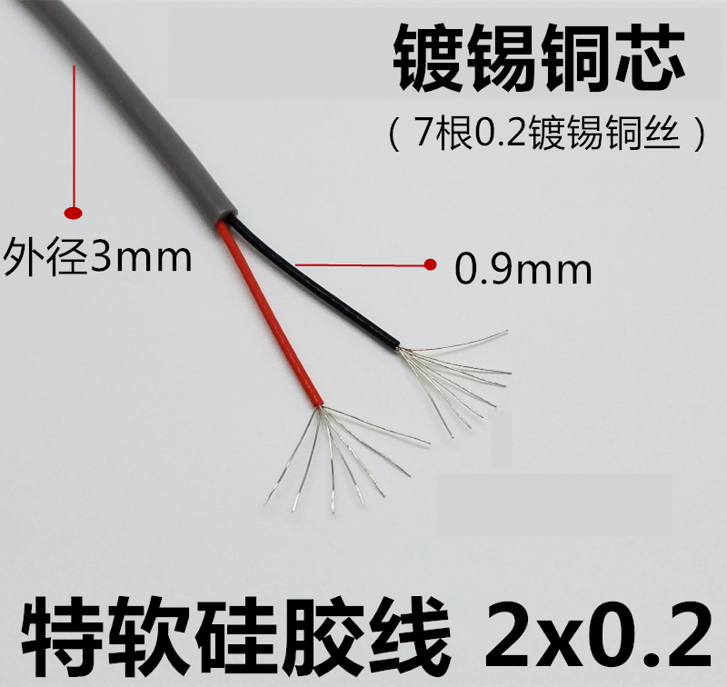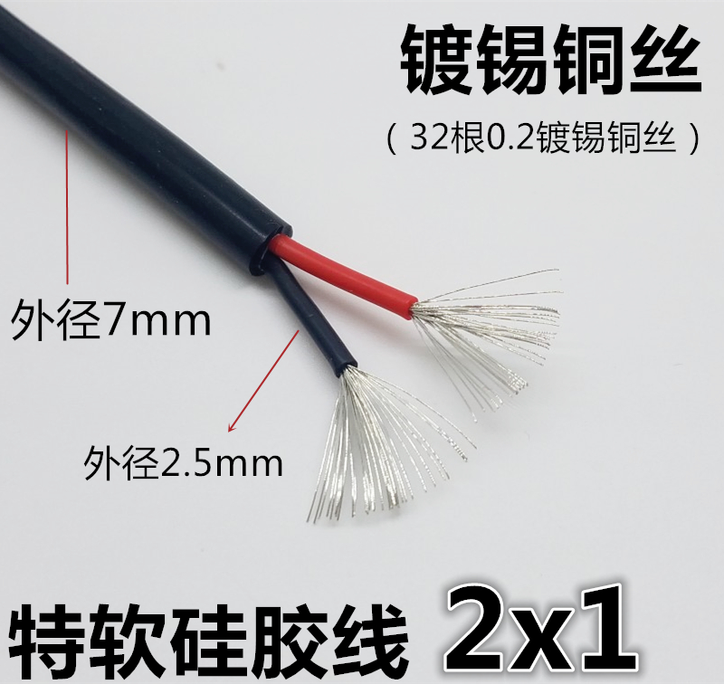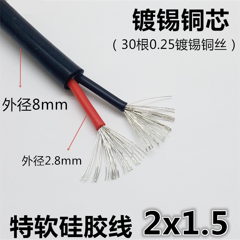 特软硅胶线2芯耐高温硅橡胶护套电源电缆线0.5/1/2.5/4/6平方