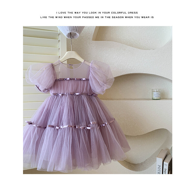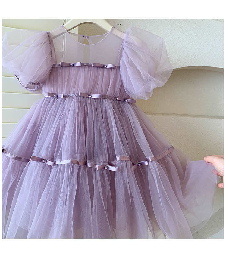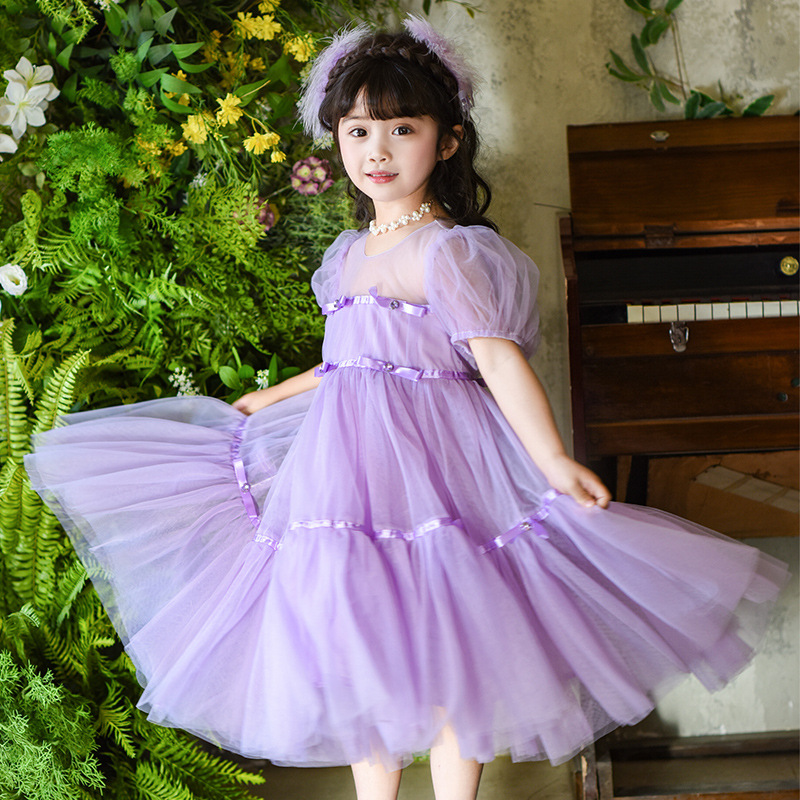 国境を越えて子供のドレスの王女のスカートの洋風の女の子の網の紗の蓬のスカートのピアノの演奏服の女の子のワンピース