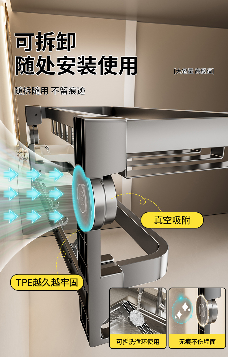 吸盤折りたたみフラットメッシュバスケットバスルームセット