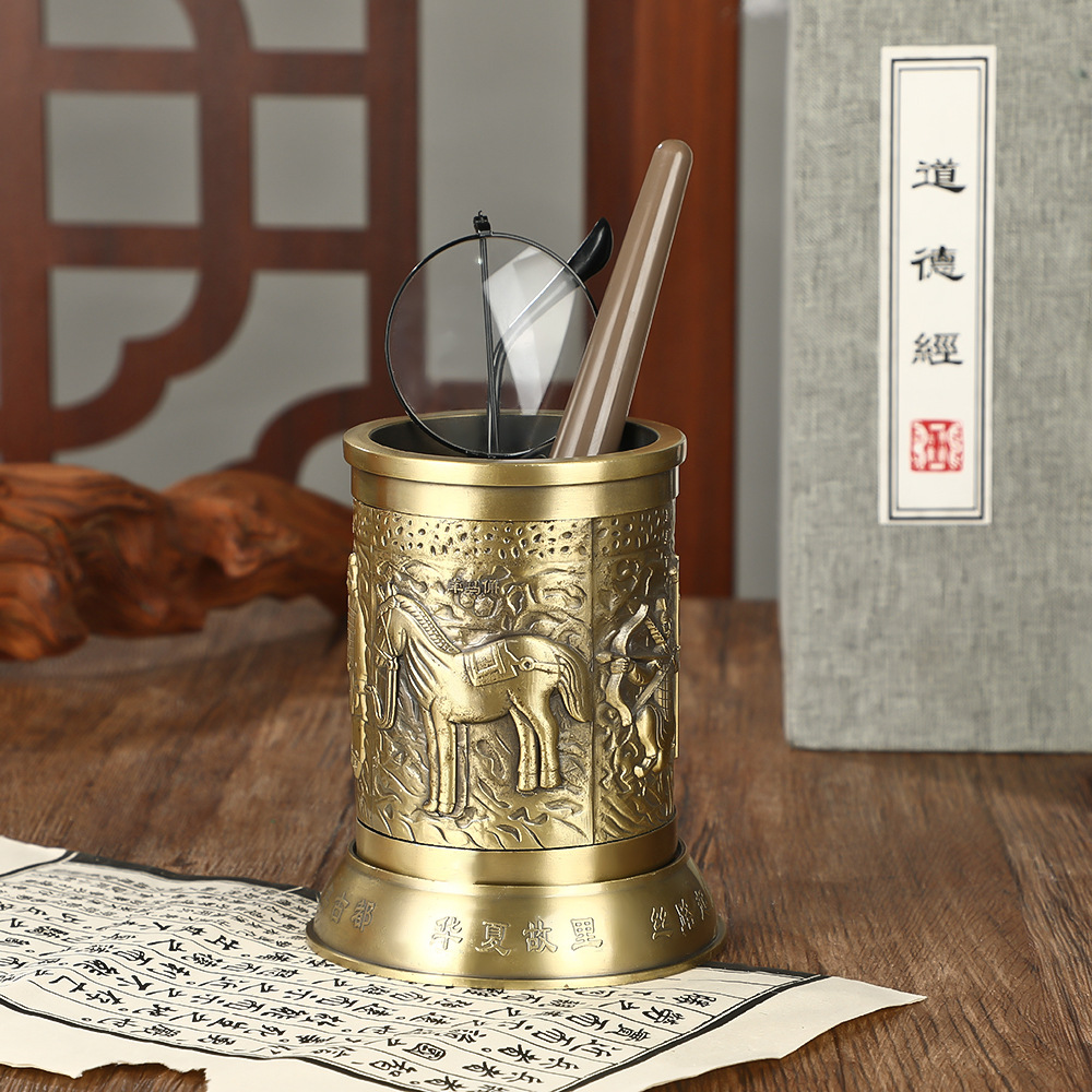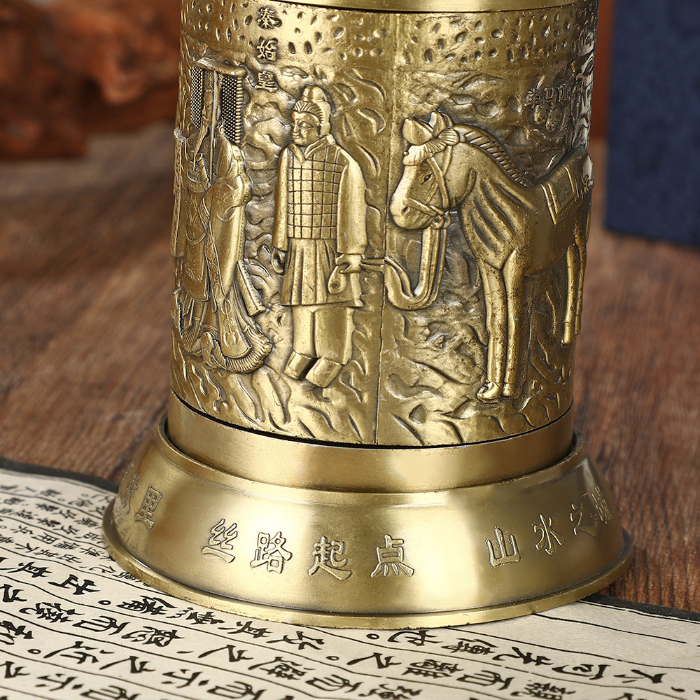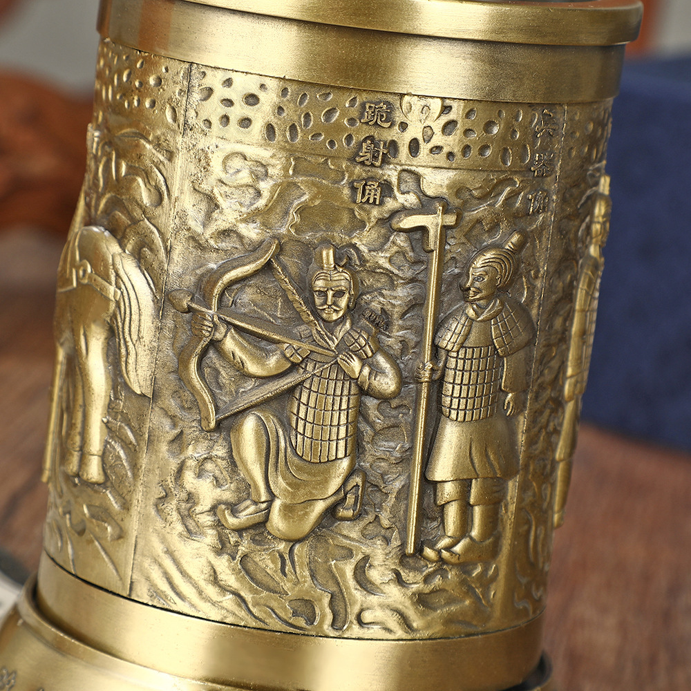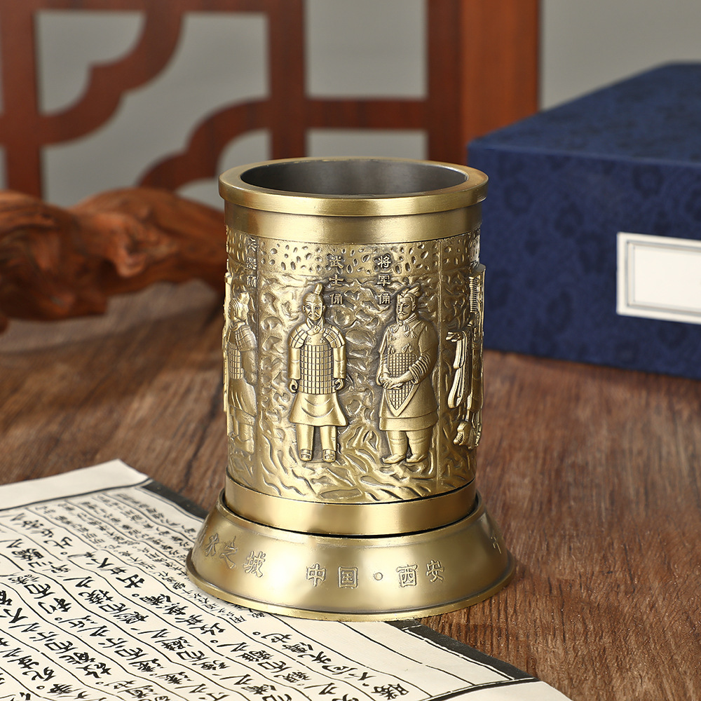 熱い販売合金秦の始皇帝兵馬俑彫刻ペンホルダーデスクトップパーソナライズされた装飾品お土産ビジネスギフト