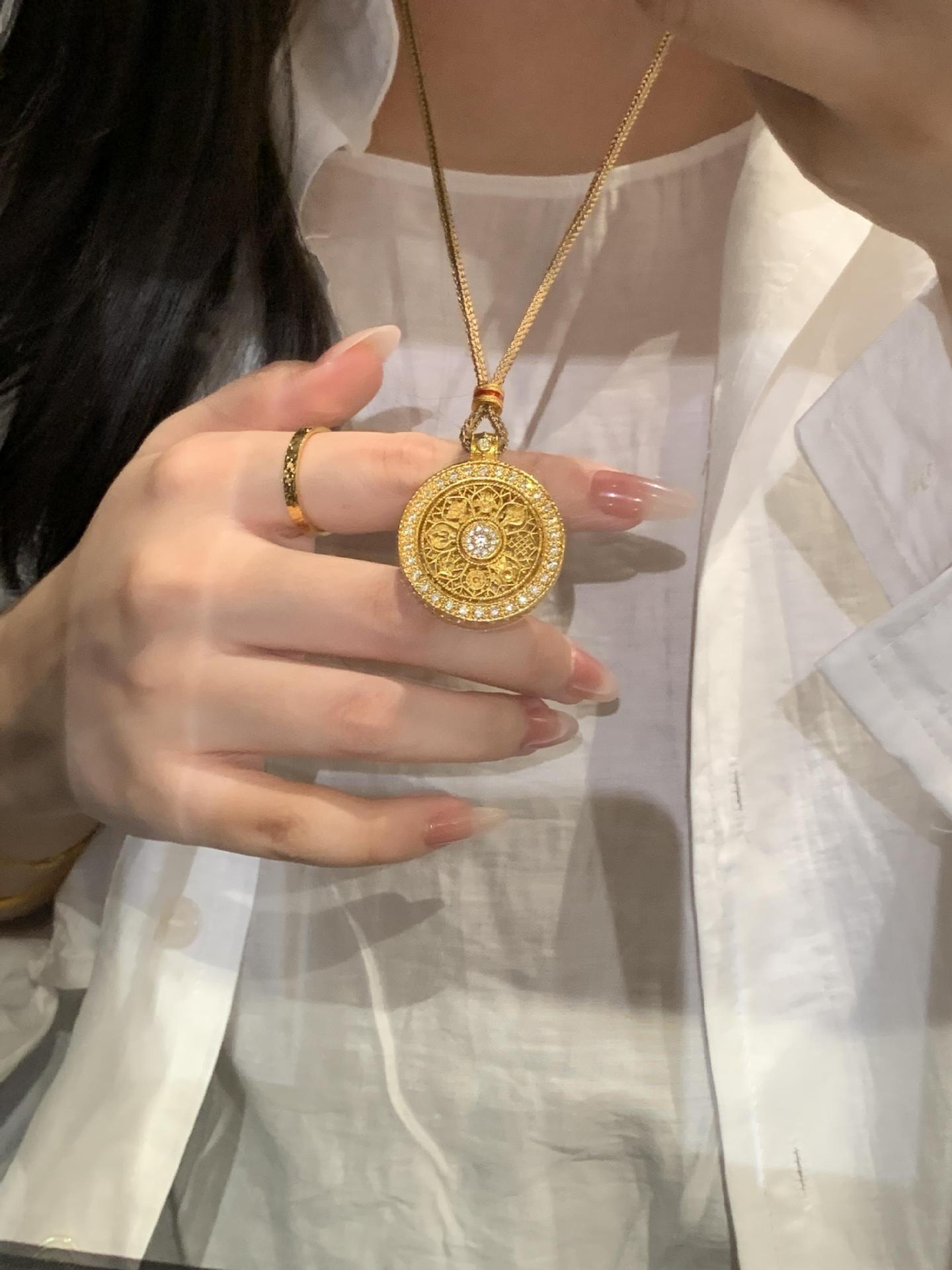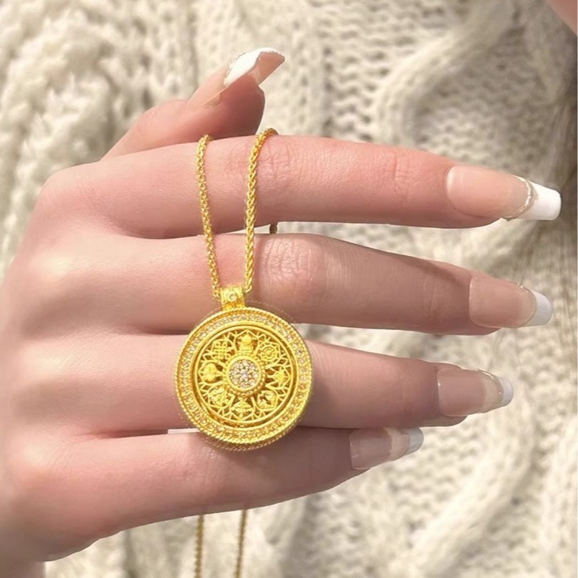 轻奢宫廷风镶钻可转动八罗宝盘项链女奢华高级感吊坠小众设计颈链