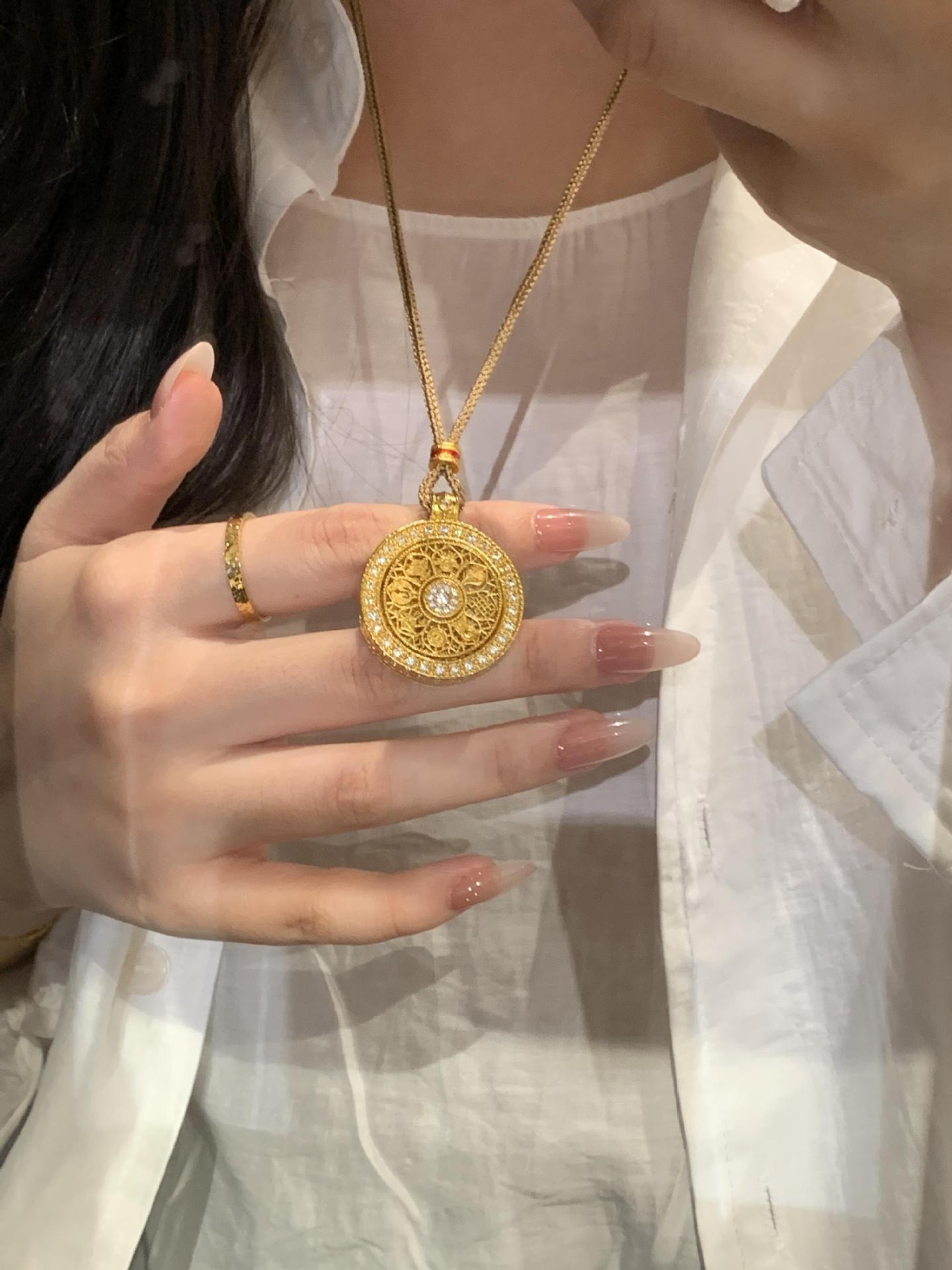 軽豪華宮廷風点ドリル八宝羅針盤ペンダントネックレス女vingate小衆個性デザイン感鎖骨鎖