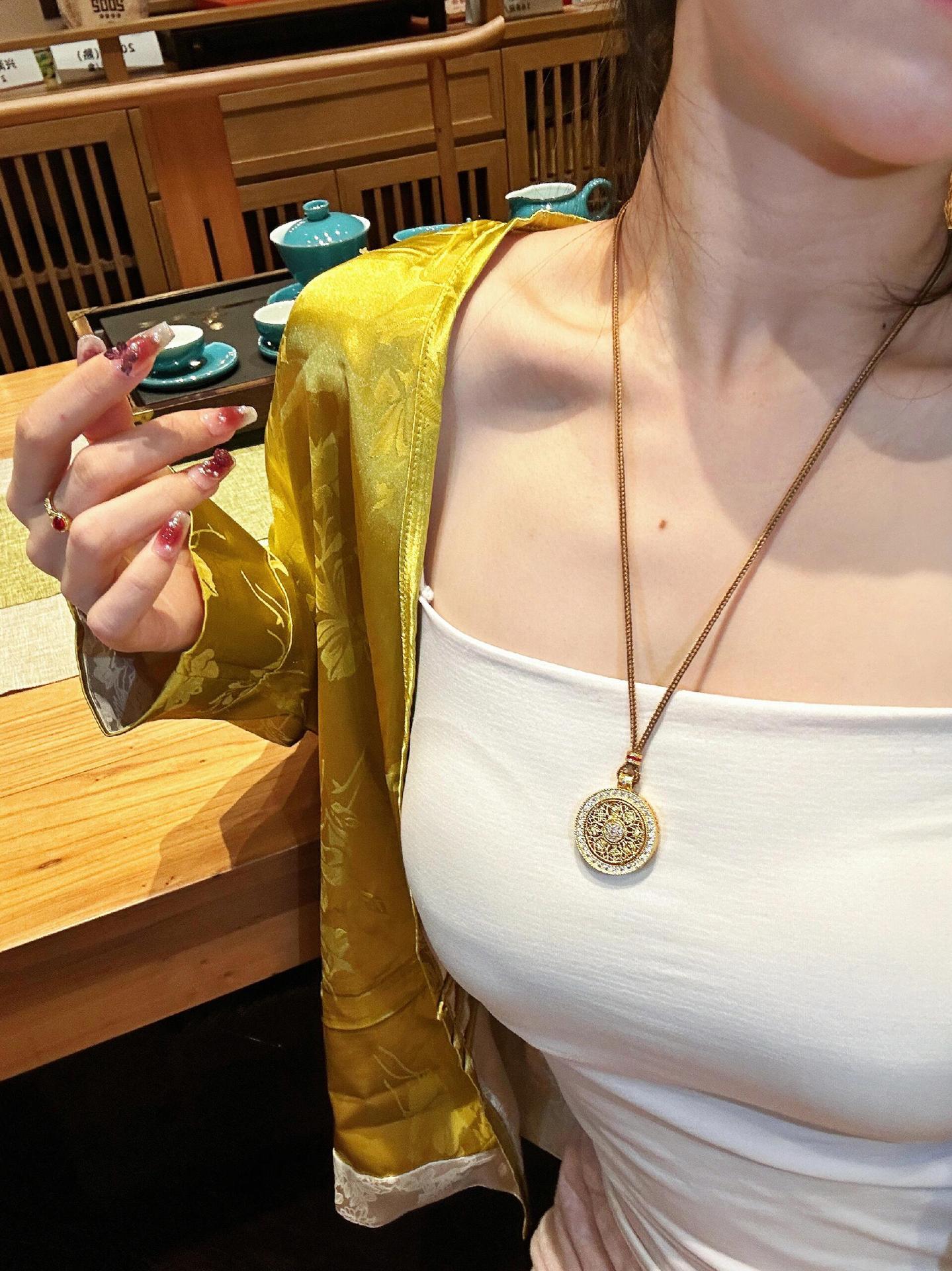 轻奢宫廷风镶钻八宝罗盘吊坠项链女时尚气质感颈链抽拉式毛衣链