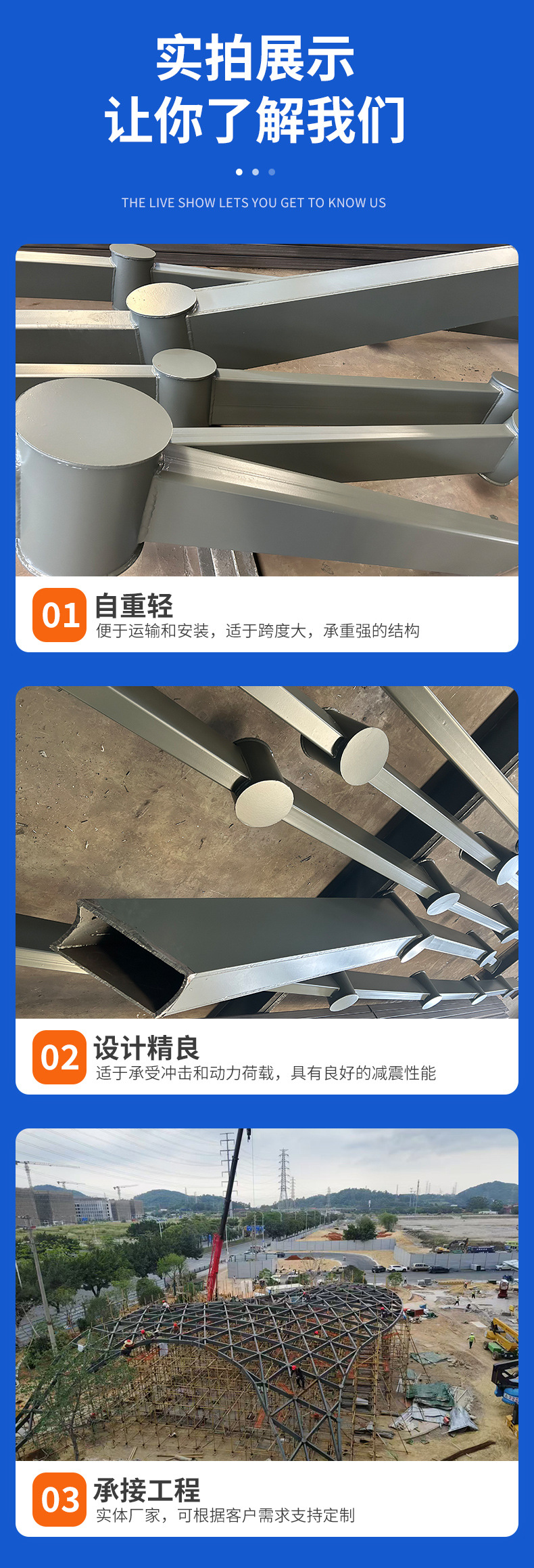 各種H型鋼加工、異形製作、鉄骨工場建設、鉄骨工事、鋼製梁骨組、各種仕様