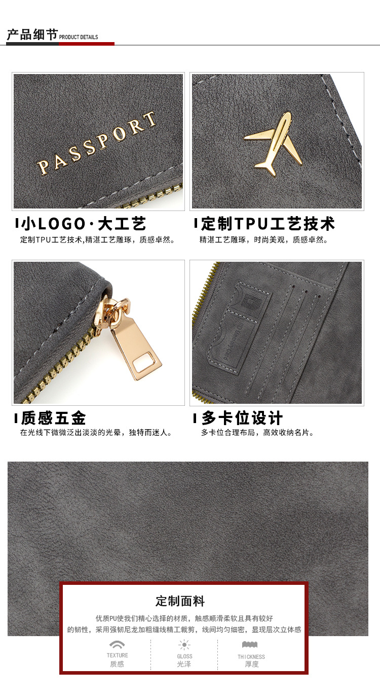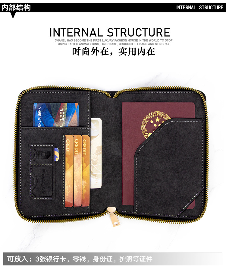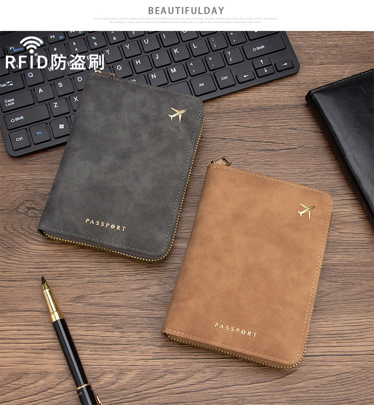 跨境新款拉链护照包加厚保护套多功能RFID防盗刷出境护照包批发