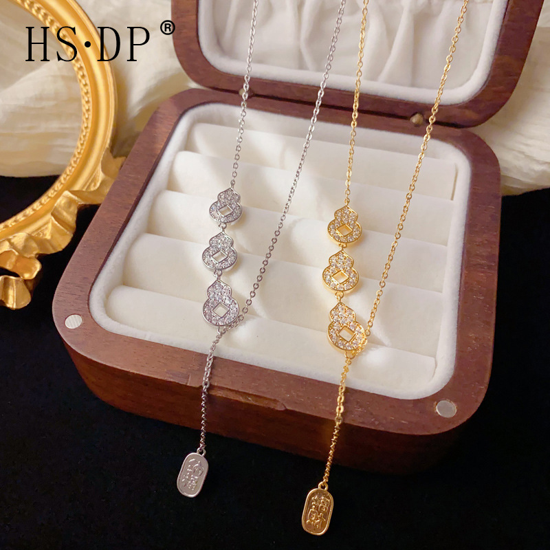 微镶锆石葫芦方牌流苏项链精致时尚轻奢百搭高级感超闪锁骨链批发