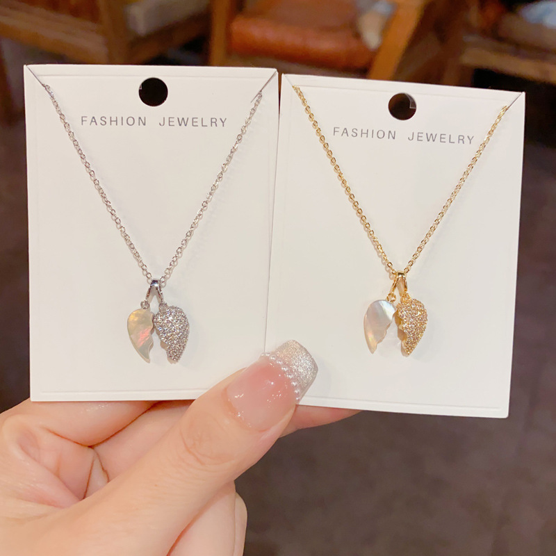 韓国版のニッチなファッションデザイン、ダイヤモンドがちりばめられたラブペンダントネックレス、パーソナライズされた軽い高級感、優しく多用途な鎖骨チェーン卸売