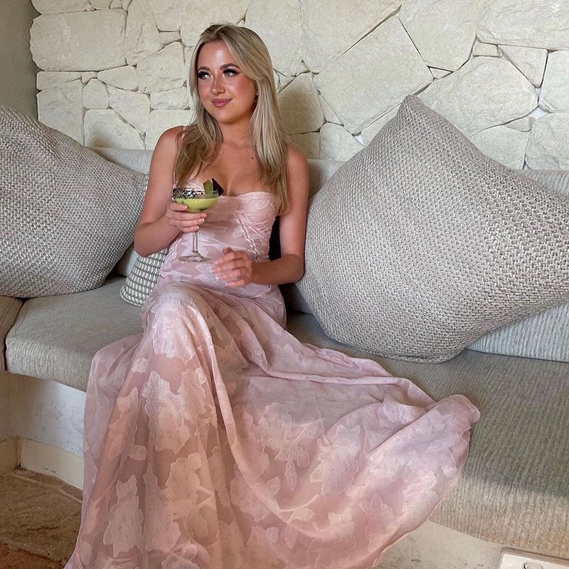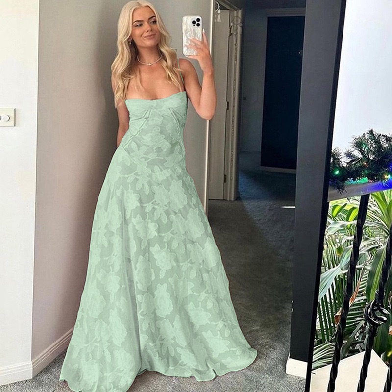 ヨーロッパとアメリカンスタイルの2025年夏の新しいクロスボーダーレディースファッションチューブトップワンラインカラー気質イブニングドレス新しいスタイル