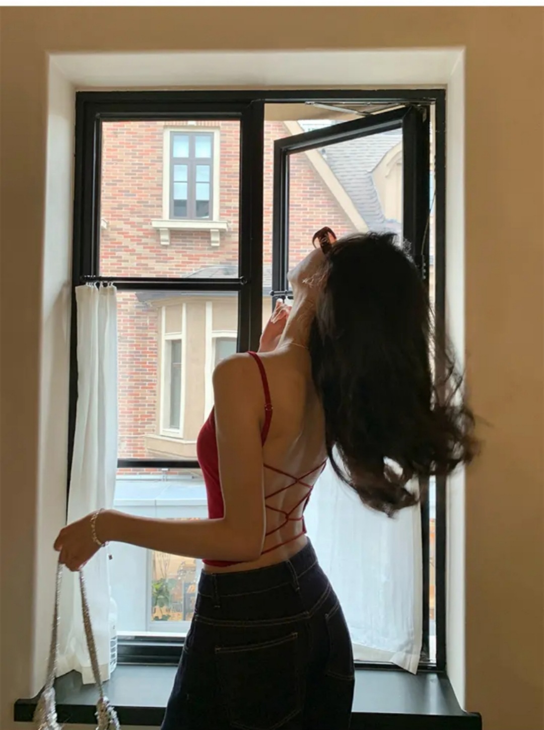【おしゃれな女の子】ギャルのセクシーなキャミソールの女性服の春の新型の美背はスリムに見えます。