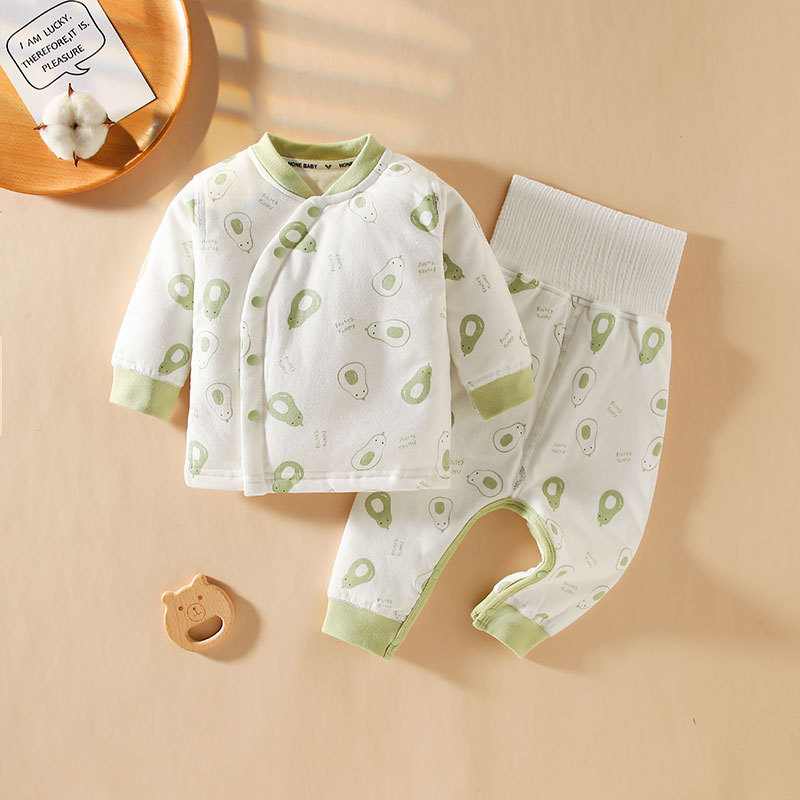 婴儿宝宝A类秋冬款保暖纯棉上衣新生儿夹棉衣服宝宝斜开扣连体衣