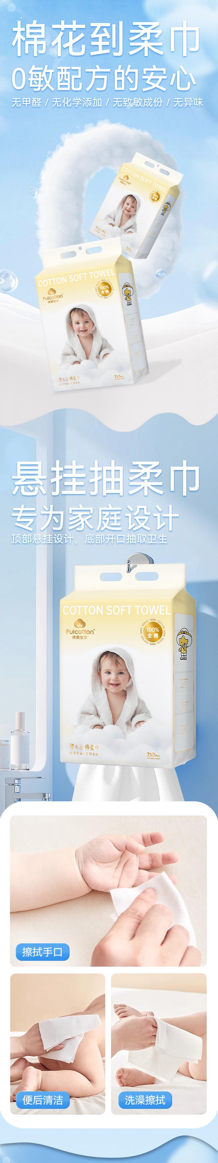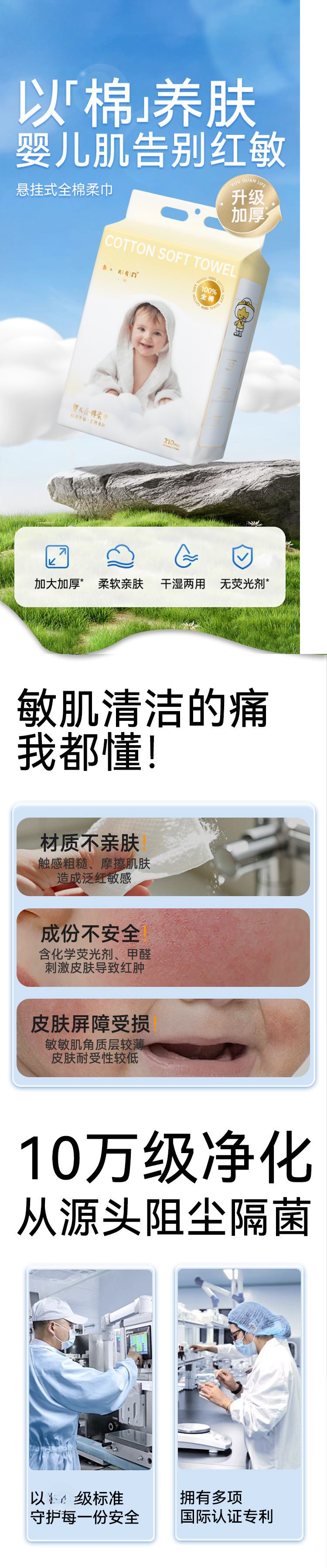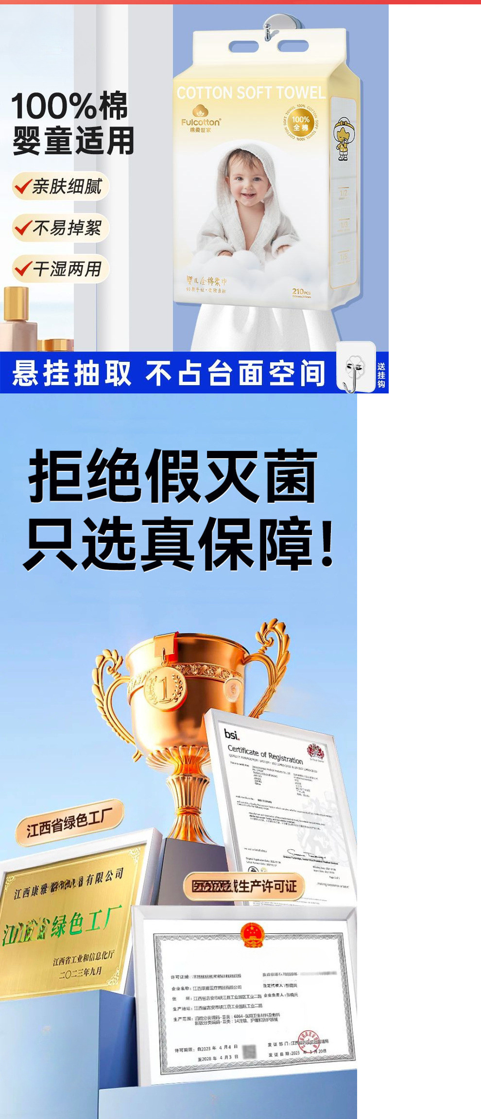 Mianshengjia 新生児用コットンソフトタオル、ウェットとドライの両用、吊り下げ抽出、厚くて柔らかい洗顔タオル