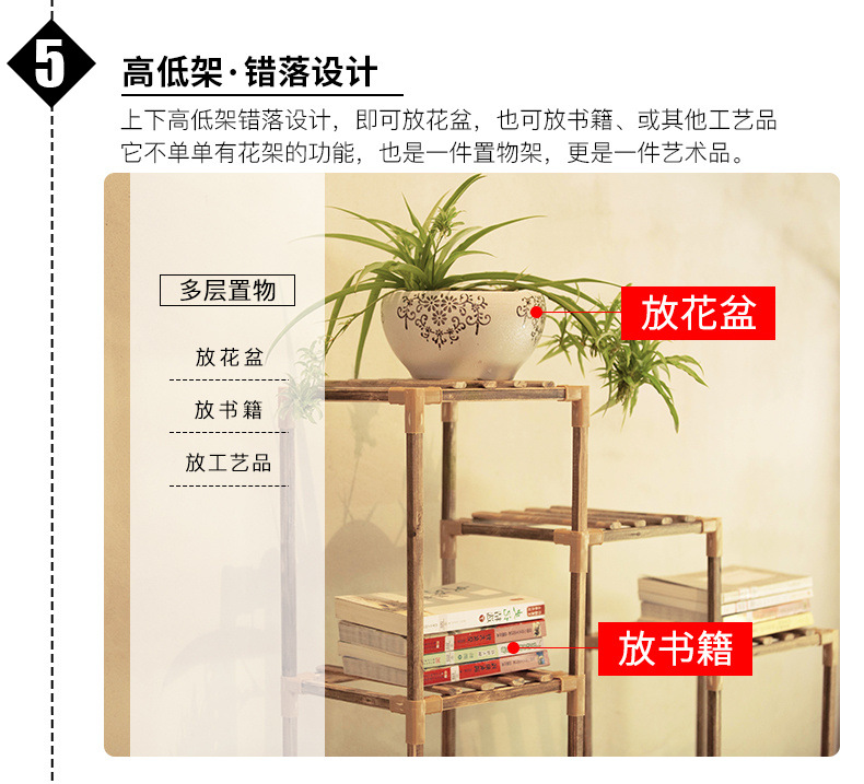 フラワーシェルフリビングルーム屋内家庭用植木鉢ラック無垢材収納ラック多層多肉植物バルコニー花ラック卸売供給